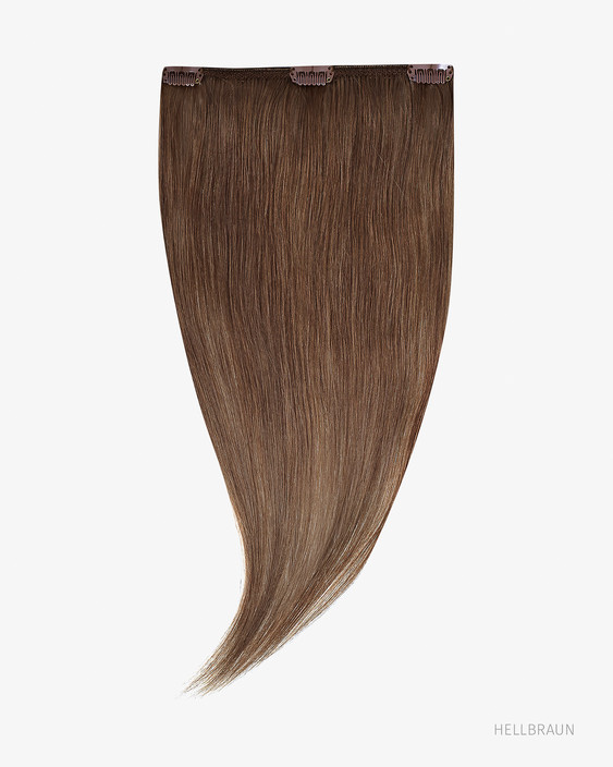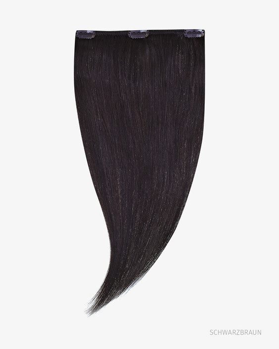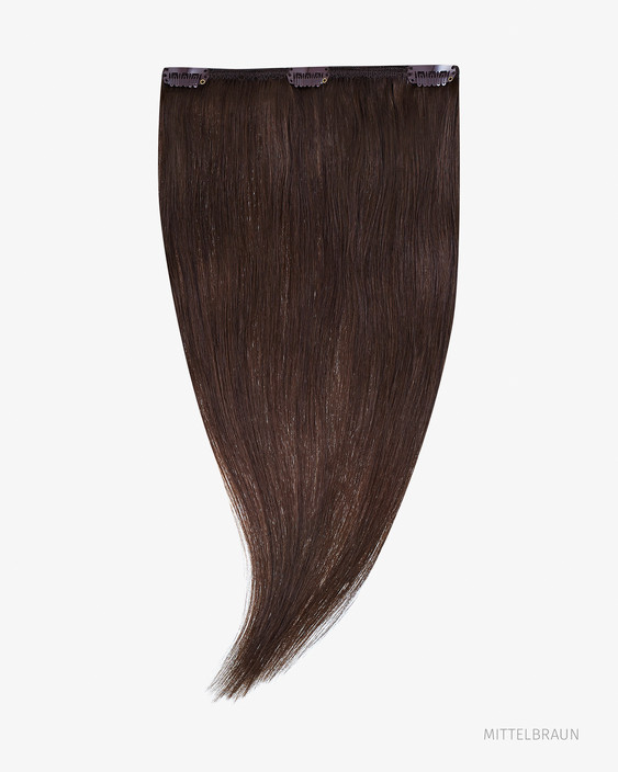 Clip in extensions 40 cm lang Tresse mit 3 Clips und 30g Gewicht. Die Breite beträgt ca. 15-17 cm. Sie wird hauptsächlich zur Verdichtung anderer Sets benutzt. Wenn Sie diese z. B. einem 40 cm 120g Set hinzufügen, bekommen Sie ein sehr dichtes 40 cm 150g Set. Die Tressen können auch zur Verdichtung des Eigenhaares benutzt werden. So enthalten z. B. zwei 40 cm 30g Tressen fast so viele Haare wie ein 40 cm 75g Set, wodurch man das Volumen der eigenen Haare deutlich erhöhen kann. Zur Verlängerung empfehlen wir dagegen die Verwendung des kompletten Sets.