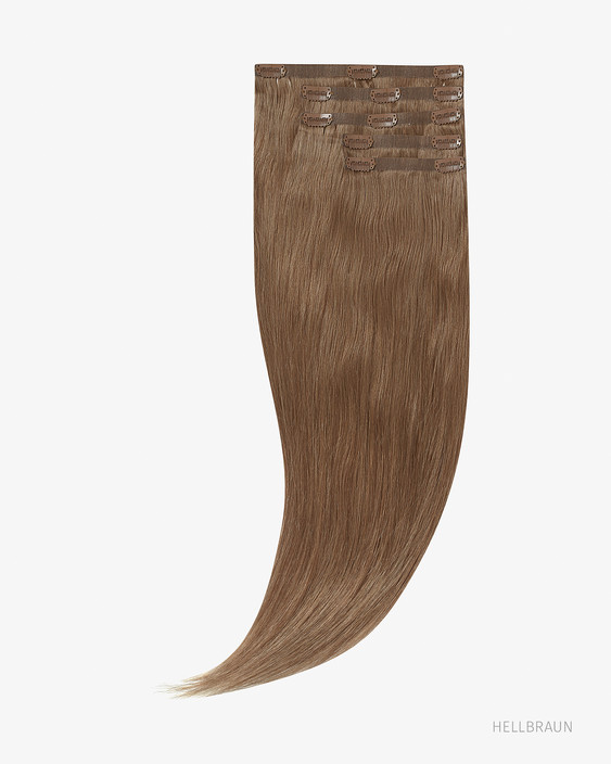 Clip-in ist zurzeit die beste Methode für eine schnelle und effektvolle Haarverlängerung und/oder Haarverdichtung. Sie können diese Extensions innerhalb weniger Minuten selbst anbringen. Nahtlose Clip-in Extensions unterscheiden sich von den "traditionellen" Clip-in Sets dadurch, dass die Tressenränder nicht genäht, sondern geschweißt werden. Infolge dessen sind die Tressen flach mit einem viel dünneren Verbindungspunkt, der bei der Berührung auf dem Kopf fast unfühlbar. Abgesehen davon unterscheiden sie sich nicht weiter von den Clip-in Extensions mit Nähten. Nahtlose Haare verkaufen wir nur in der Version mit 5 Tressen und 13 Clips.